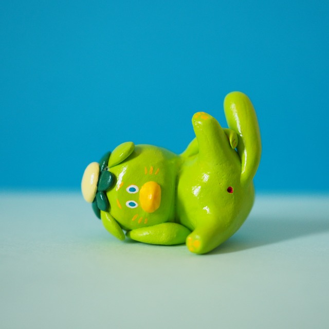 ともだちのかっぱがたい焼きかってきてくれるって それから3日たった もしかしたら人間に捕まっちゃったのかもしれない 助けに行こうと思うんだけど怖くて座っている もし逆の立場ならどうだろう? 自分が捕まって、友達まで捕まってしまったらとても悲しい じゃあ行くの辞めようかな いや、今のは逆の立場に考えた風で、自分のことしか考えてなかった もう一度逆の立場になってみよう 怖い、助けてほしい、もうたい焼き買いに行って3日も経ってるんだから変に思うはずだ もうすぐ来てくれる きっと来てくれる でも本当は来ないでほしい、来るべきでない 来たら絶交だ!来るな! 1週間後、友達のかっぱはたい焼きを買ってきた ひとくち食べたら白あんだった 絶交した size:H45mm